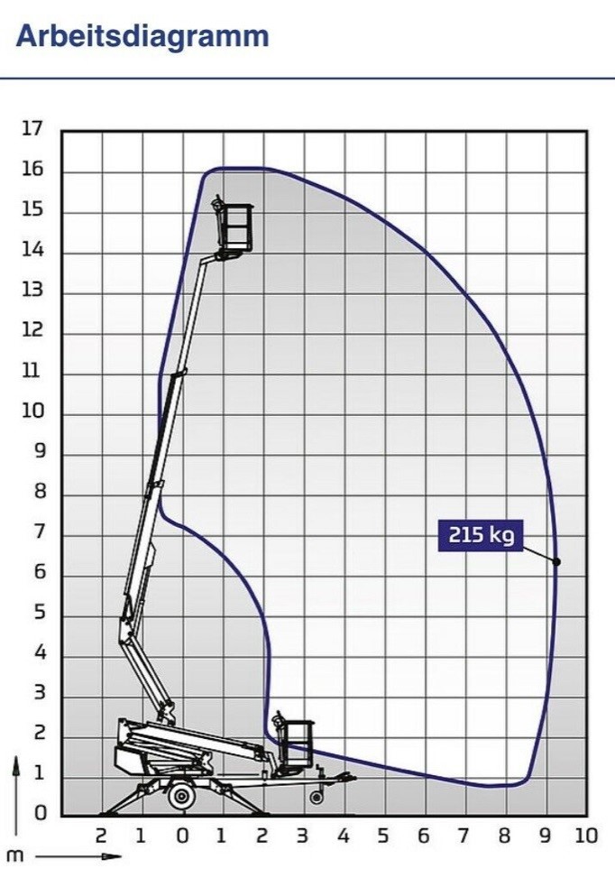 Die Dino XT 160 ist ein Hubsteiger mit einer Arbeitshöhe von 16 Metern. Die seitliche Reichweite beträgt 9,10 Meter, Die Korblast beträgt : 210 kg , Abstützbreite 3,80 Meter , die Bühne verfügt über einen Fahrantrieb. Betrieb mit Diesel oder 230 Volt Haushaltsstrom. Das Eigengewicht der Bühne beträgt 1995 kg